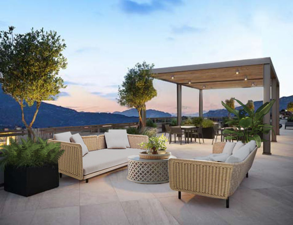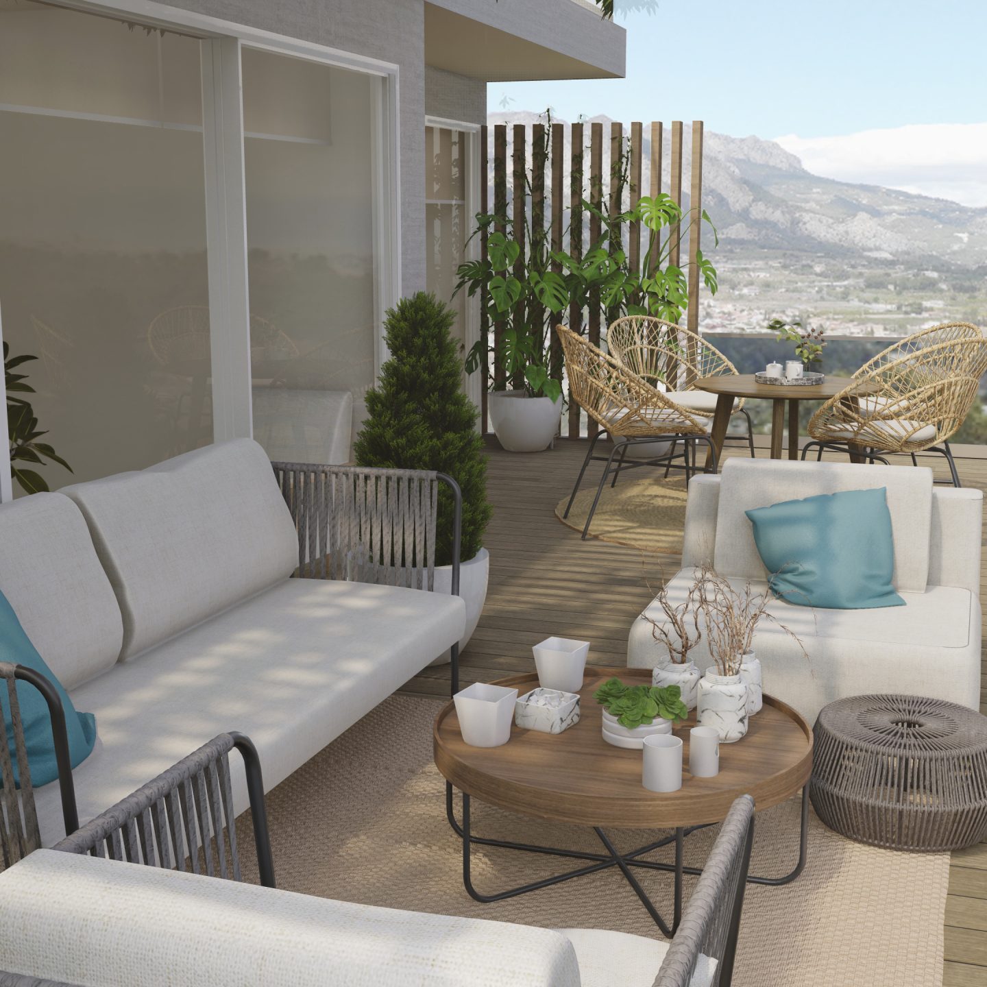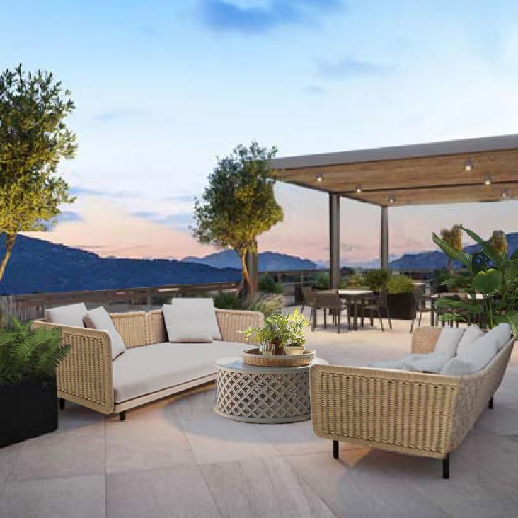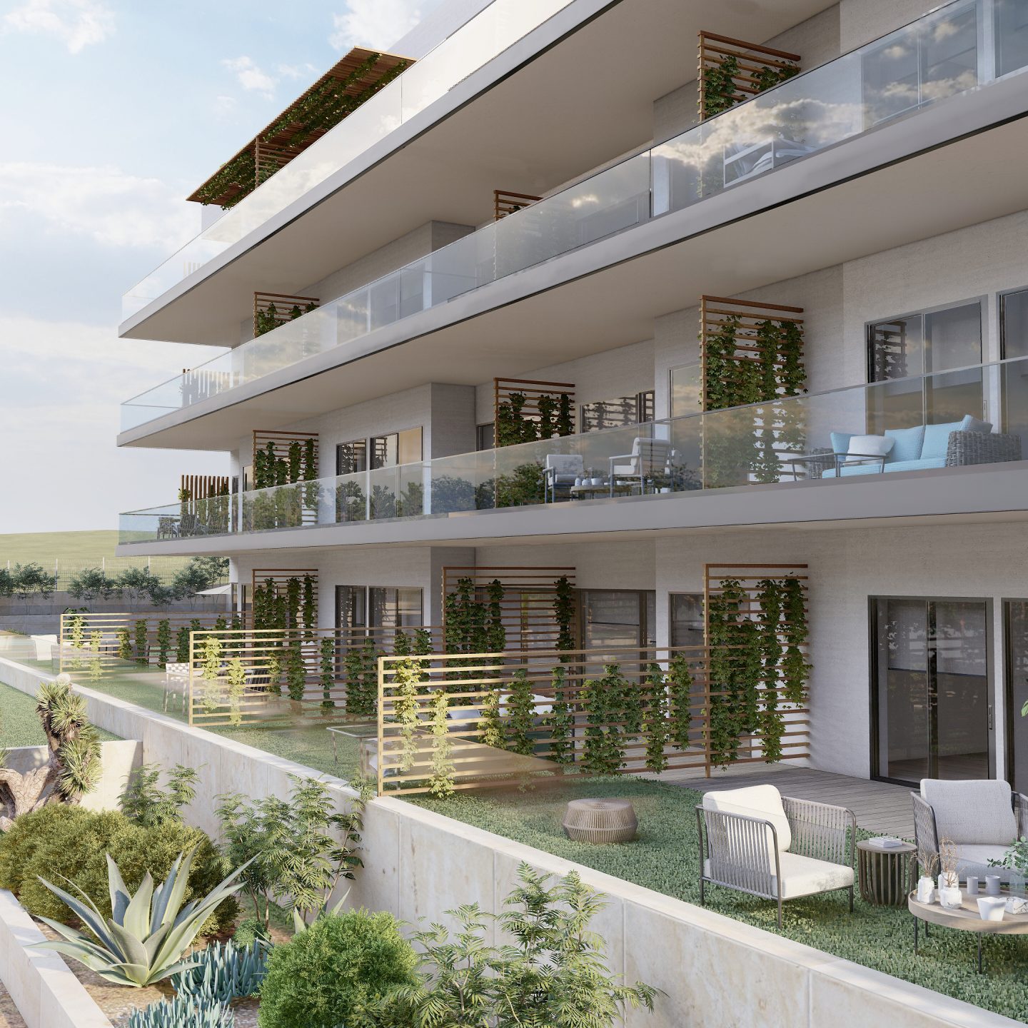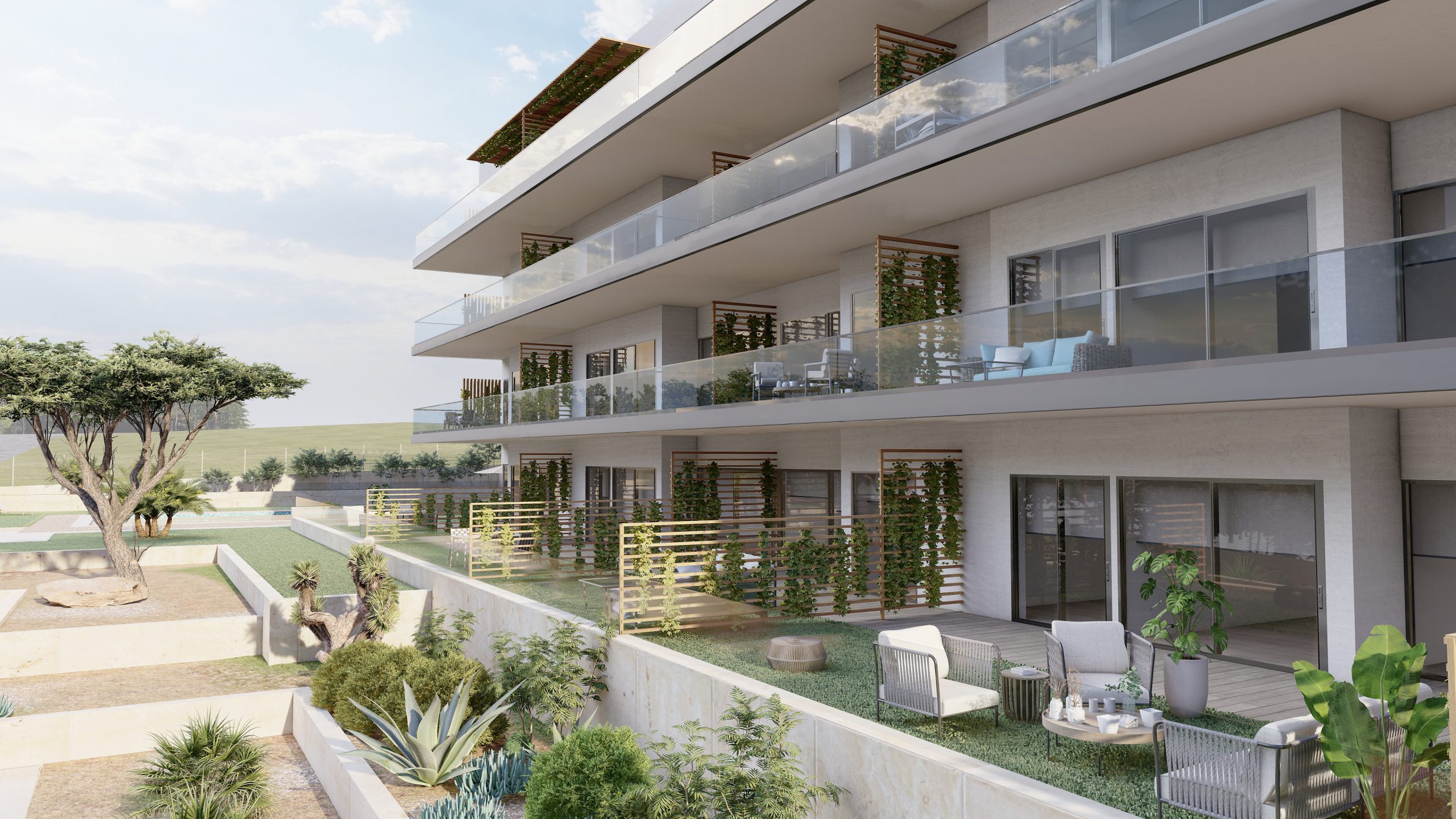 Bloque abierto de 44 viviendas de uno, dos y tres dormitorios, con amplias terrazas voladas que protegen del sol. Se buscan la sombra, el contacto visual con el exterior y la funcionalidad. La parcela se urbaniza y ajardina para el disfrute de la comunidad, con una gran piscina y zonas comunes. La cubierta se ajardina en parte, y se generan en ella espacios adaptados al ocio y al deporte.